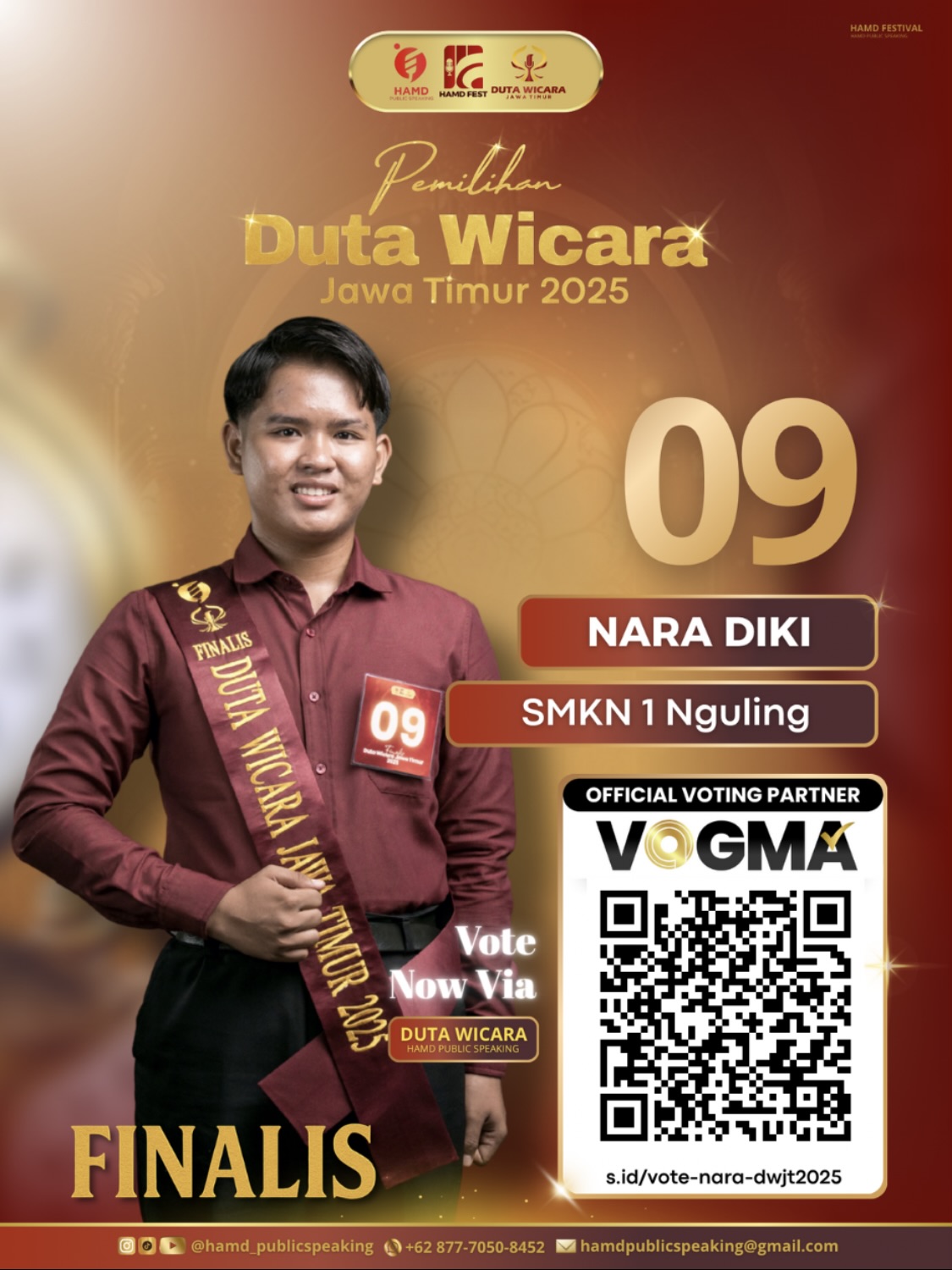 Di antara ratusan langkah yang pernah ditempuh, inilah panggung yang menuntut keberanian paling besar. Para Finalis Nara Duta Wicara Jawa Timur 2025, berdiri dengan keyakinan dan suara yang siap menggugah. Perjuangannya tidak singkat. Dipahat oleh latihan, kegigihan, dan mimpi yang tak pernah padam. Kini, dukunganmulah yang akan menentukan langkah selanjutnya. Ayo pilih Nara, dan biarkan suaramu menjadi kekuatan yang membawanya menuju puncak.